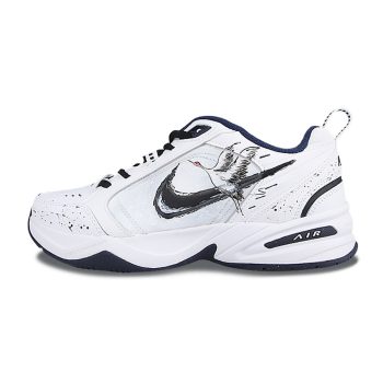 This customized shoe uses the original Nike Air Monarch 4 White Navy retro classic low cut dad shoes for both men and women in blue and white # gift recommendation, with the original shoe item number 415445-102. The inspiration comes from “peace and joy, smooth and worry free”, even if everything goes wrong, we still hope for everything to go smoothly.
